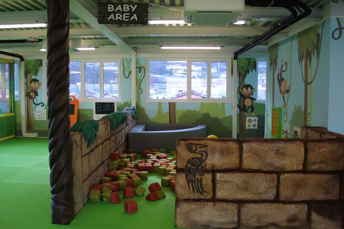 Parco giochi interamente al coperto di 200 mq con scenografia 3D a tema giungla. Due zone separate per età: area baby (0-3 anni) e playground (3-12 anni). Giochi multisensoriali, scivoli, arrampicate e attività per bambini dai 0 ai 12 anni. Calzini antiscivolo obbligatori. Parcheggio gratuito. Ingresso CHF 8-10 per sessione di 90 minuti.